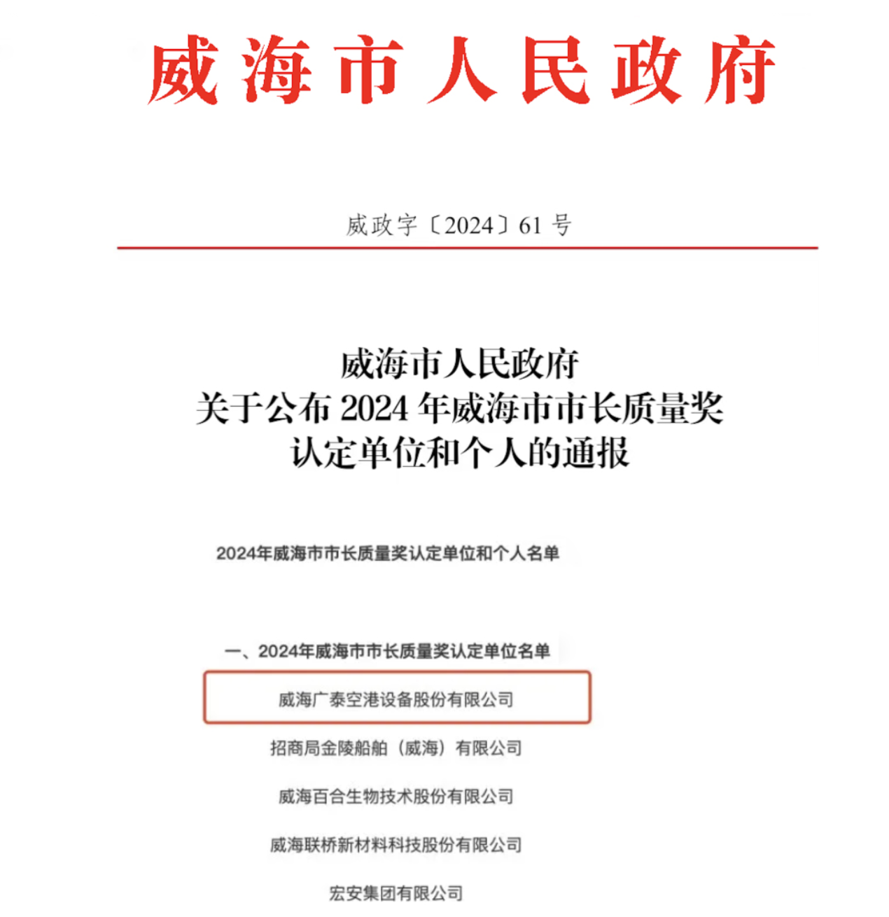 近期,由威海市质量强市及品牌战略推进工作领导小组办公室印发通知,组织开展了2024年度威海市市长质量奖认定工作。经过激烈的角逐,乐鱼网页版登录入口(以下简称“威海广泰”)在众多竞争者中脱颖而出,成功荣获2024年度威海市市长质量奖。此项殊荣不仅是对威海广泰产品…