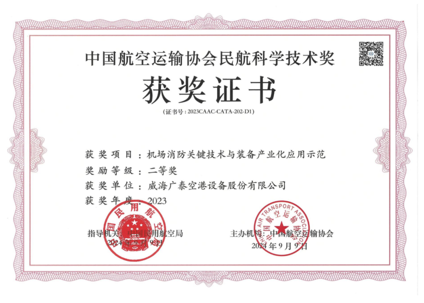 2024年10月25日,民航局第二届CATA大会在北京召开,会议期间举行了2022年度和2023年度中国航空运输协会民航科学技术奖颁奖。威海广泰“机场消防关键技术与装备产业化应用示范”和“智能万向传输航空货运装载设备关键技术开发与应用”项目分别荣获“2023年度中国航空运输协会民航科学…
