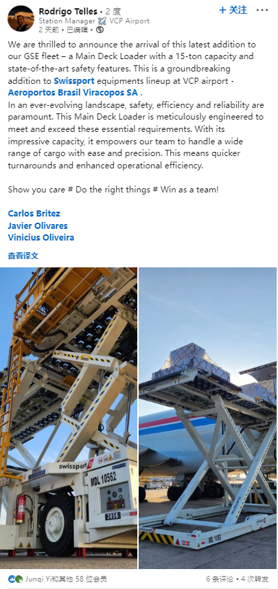 近期,由于威海广泰集装货物装载机在海外市场的出色作业表现,全球领先的地服公司Swissport的一位相关代表在领英发文为广泰产品点赞!我们很高兴地宣布我们GSE车队的最新成员的到来——一台承载重量为15吨、具有最先进安全功能的集装货物装载机。这是Swissport在坎皮纳斯国际机场的…