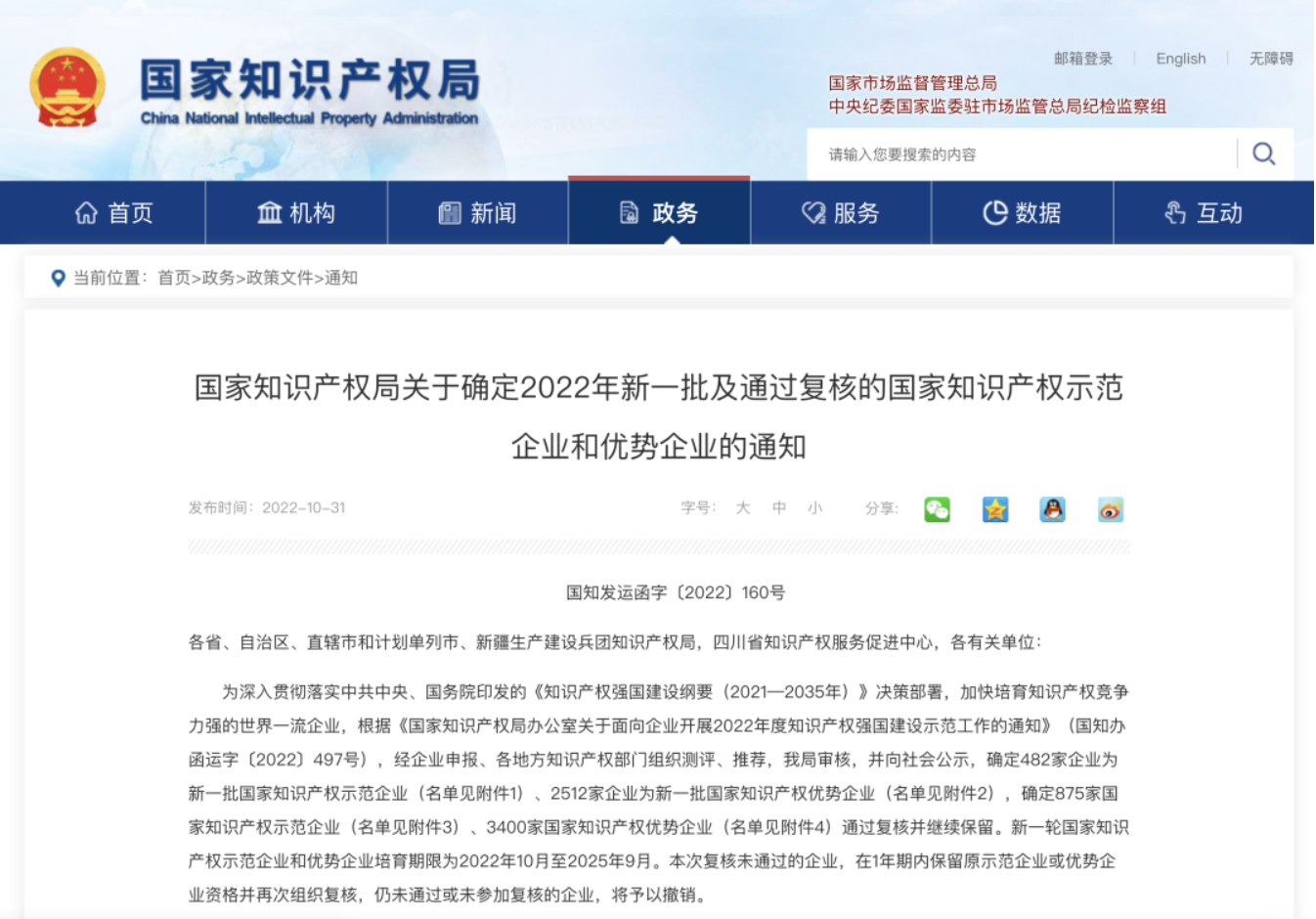 近日,国家知识产权局关于确定2022年新一批及通过复核的国家知识产权示范企业和优势企业的通知,乐鱼网页版登录入口(以下简称“威海广泰”)喜获“国家知识产权优势企业”称号。为贯彻落实《知识产区强国建设纲要(2021-2035年)》和《“十四五”国家知识产权保护和运用…