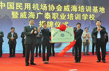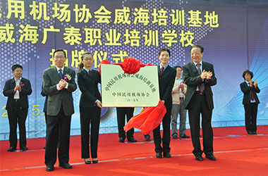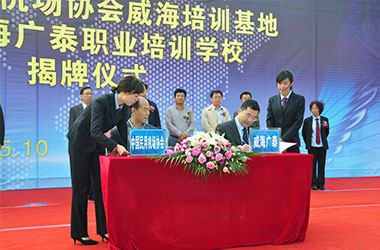 2015年10月,威海广泰与中国民用机场协会联合在威海广泰职业培训学校成立“中国民用机场协会威海培训基地”,整合优势资源,互利共赢,共同打造空港地面设备从业人员职业化培训平台,进一步拓宽了师资渠道和培训力量,提高培训质量和实效性,对推进我国机场从业人员资质能力培训的系统化、标准化,具有重要意义。